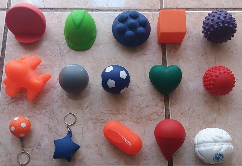 Antiestresse em vinil, diversos modelos e tamanhos, gravado a 1 cor.